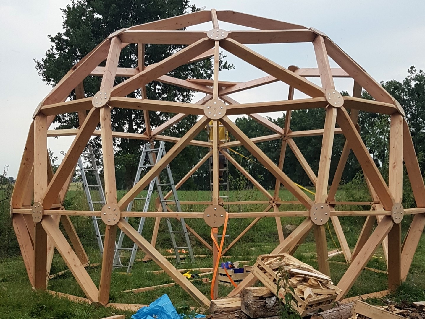 De plus, la base octaédrique permet de couper le dôme en demi-sphère quelle que soit la fréquence du dôme, contrairement aux dômes classiques.