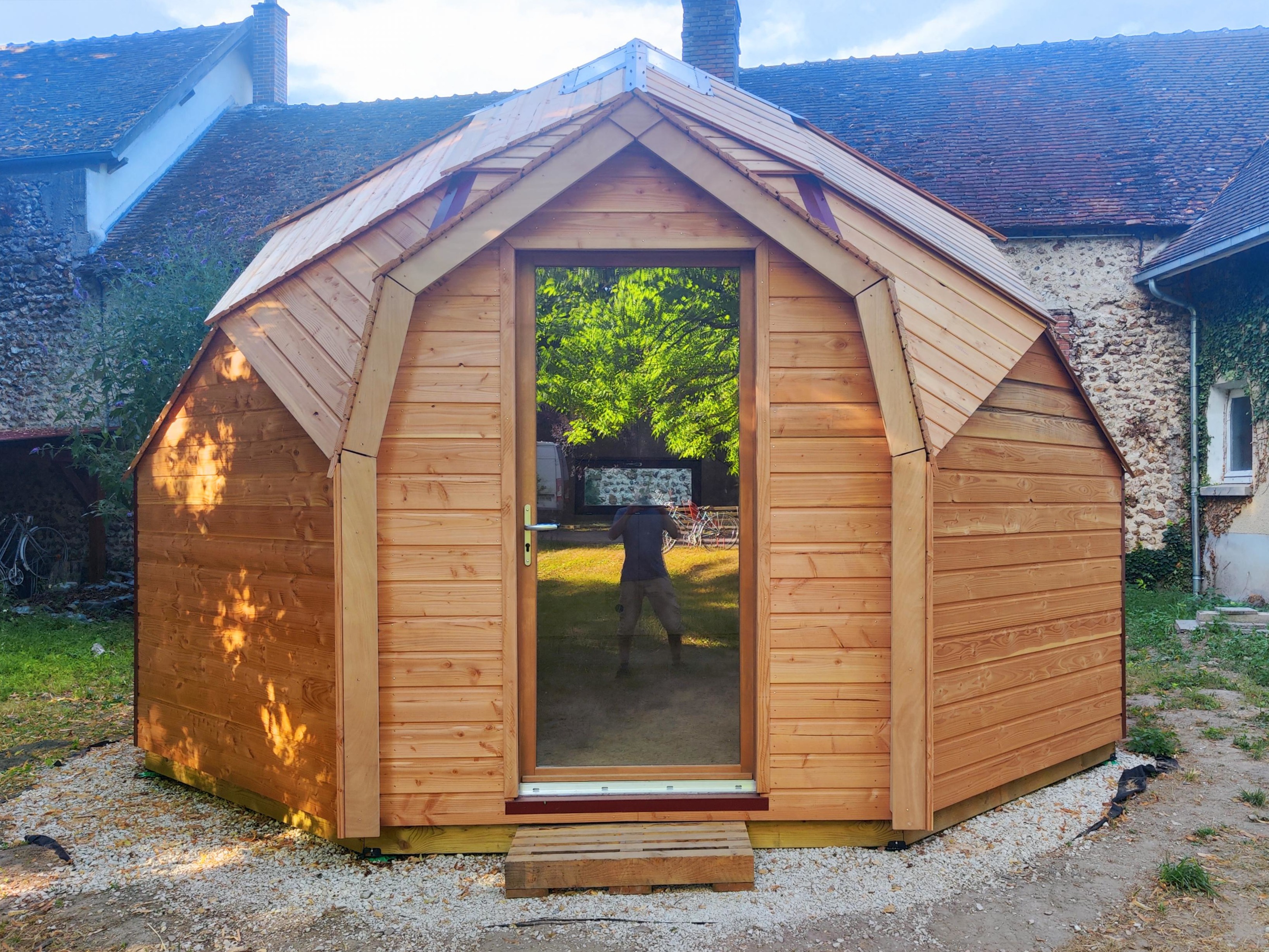 couvert en bardage bois, démontable, avec velux, isolé avec finition intérieure OSB